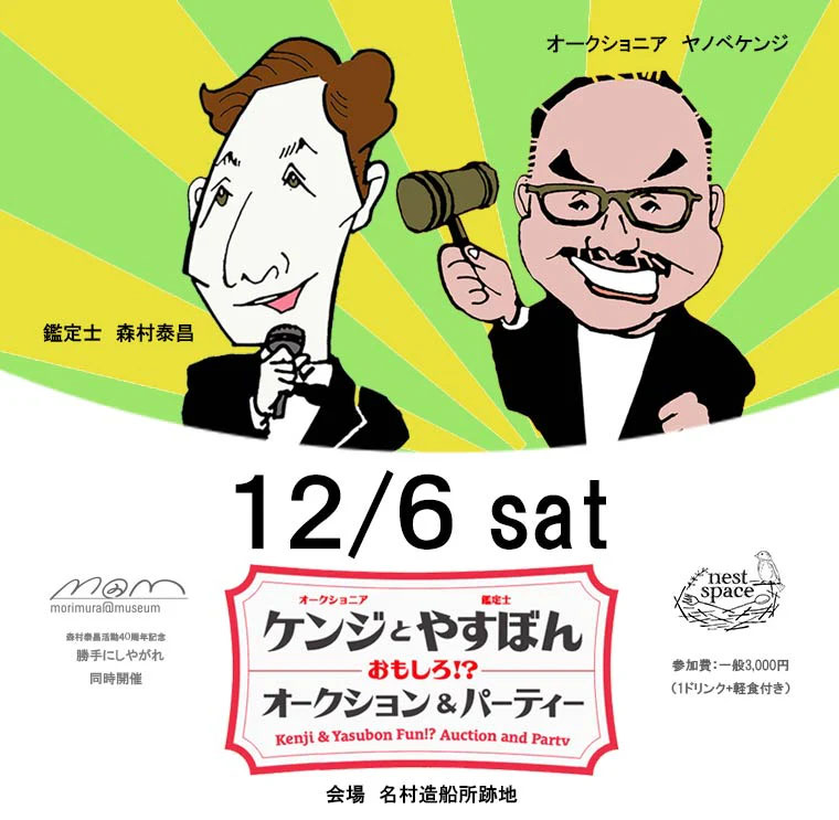 イベントお知らせ 日時:2025年12月6日(土) 15:00-19:00予定(14:30開場) 会場:クリエイティブセンター大阪(名村造船所大阪工場跡地)2階 森村泰昌氏の謎多き蒐集品が、ヤノベケンジの熱い語り口でオークションに!美味し…