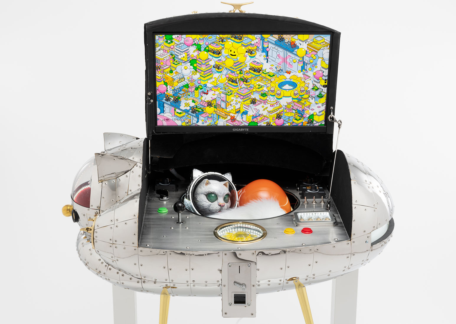 The Spaceship of SHIP’S CAT ザ・スペースシップ・オブ・シップス・キャット 制作年2025 素材ミクストメディア サイズ100×110×80 協力:BAN8KU + YANOKEN PROJECT #ゲーム#シップス・キャット#彫刻 BACK