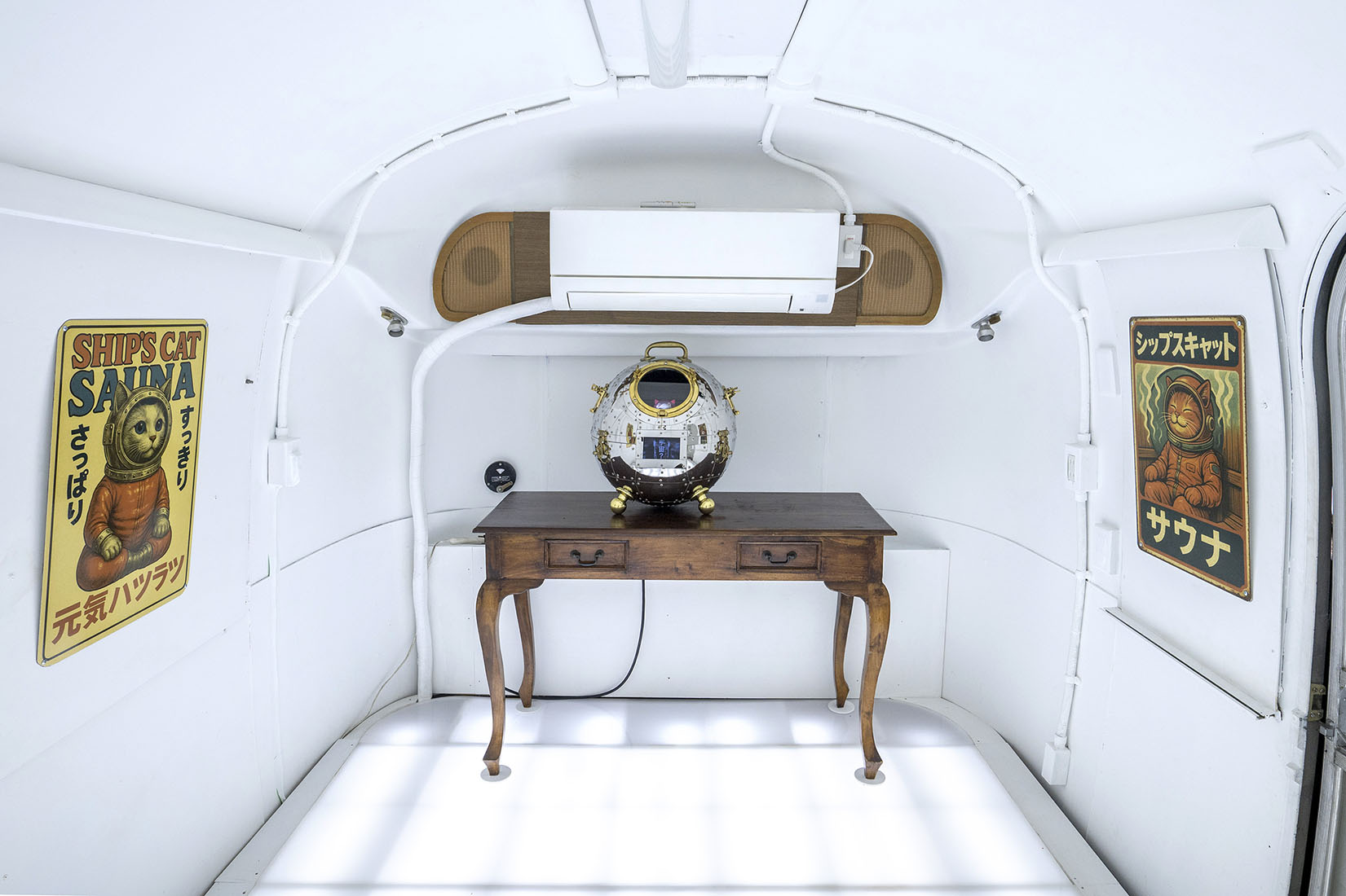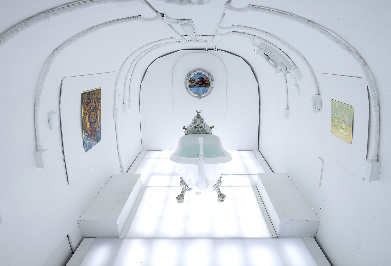 SHIP’S CAT SAUNA シップス・キャット・サウナ 制作年2025 素材ミクストメディア サイズインスタレーション サイズ可変 協力:おおさか創造千島財団 #インスタレーション#シップス・キャット#バス、サウナ BACK